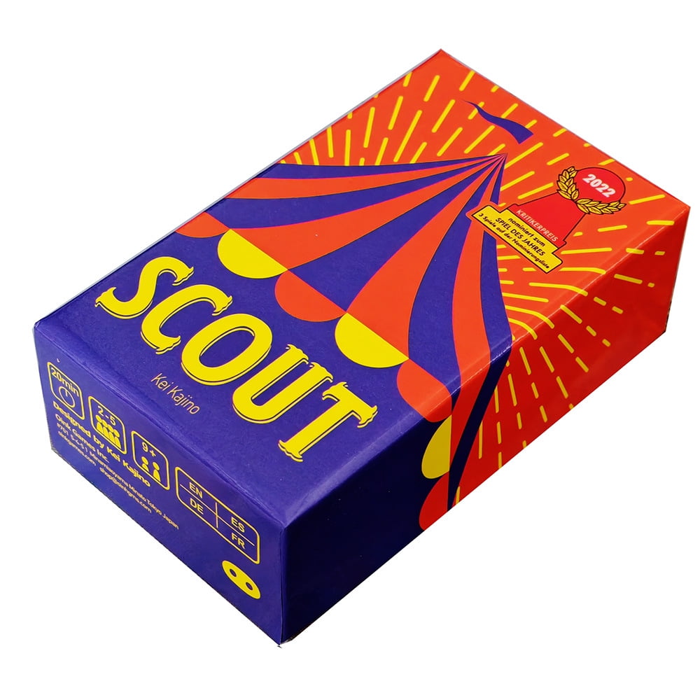 In Scout erhält jeder Spieler Karten und jede Runde muss man damit den Wert schlagen, den der Spieler vor einem ausgespielt hat. Man kann entweder eine höhere Karte ausspielen, eine Kartenreihe („Straße“) oder Zwillinge/Drillinge etc. So geht es reihum und jeder Spieler muss immer höher ausspielen, bis ein Spieler alle Karten los ist. Wenn ein Spieler den ausliegenden Wert nicht überschreiten kann, muss er eine Karte aus der Mitte auf die Hand nehmen, der nächste Spieler hat also einen kleineren Wert zu schlagen.
