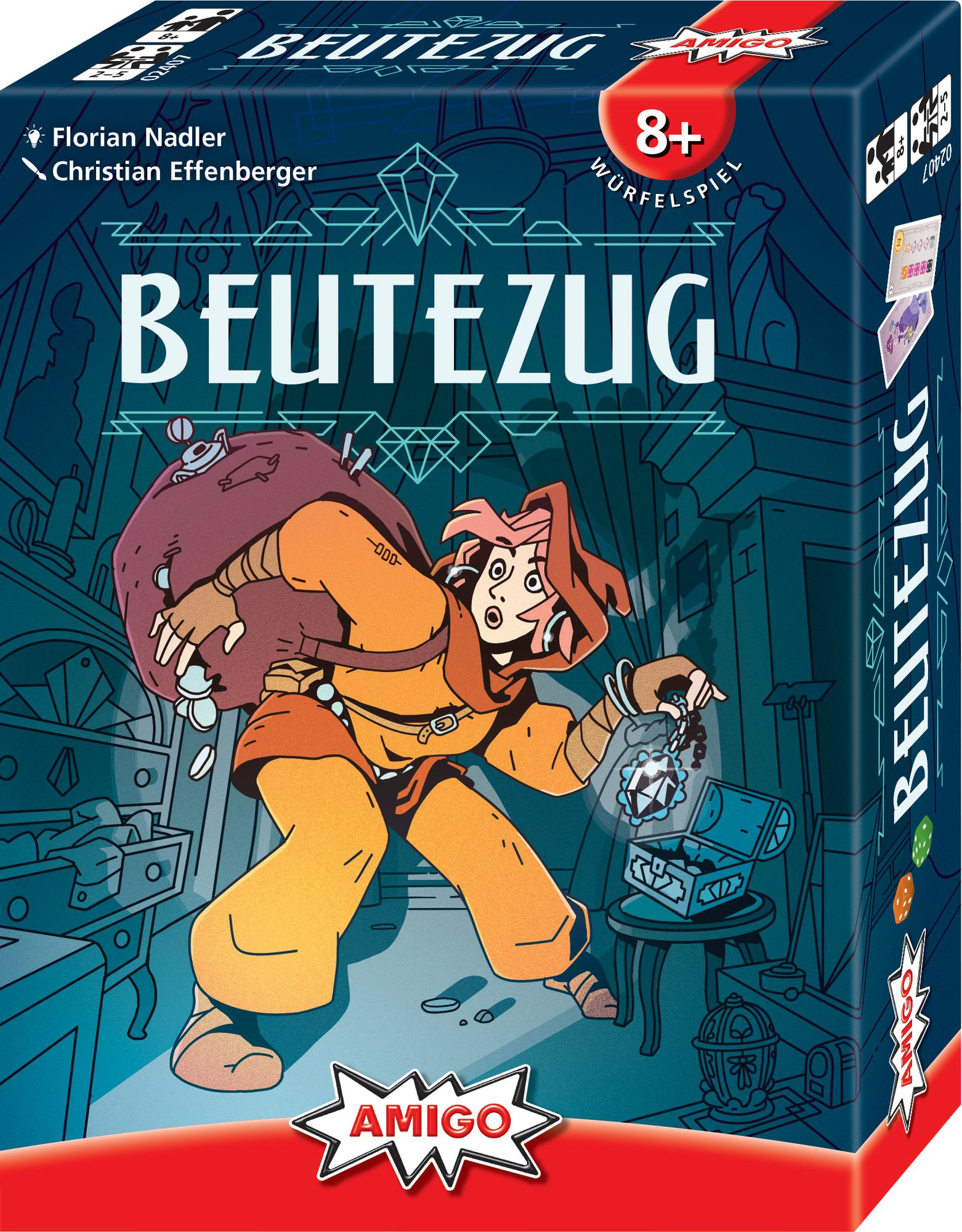Beutezug ist ein kurzes, familienfreundliches Würfel- und Kartenspiel von Florian Nadler, das in sieben Runden ins Jahr 1897 entführt, wo sich die Mitspielenden als Gauner rivalisierend um die wertvollste Beute bemühen. Dabei wählen alle zuerst geheim ein Beuteziel aus und versuchen anschließend mit farbigen Würfeln und Boni aus früheren Karten das benötigte Ergebnis zu erreichen, um ihre Beutekarte zu ergattern.