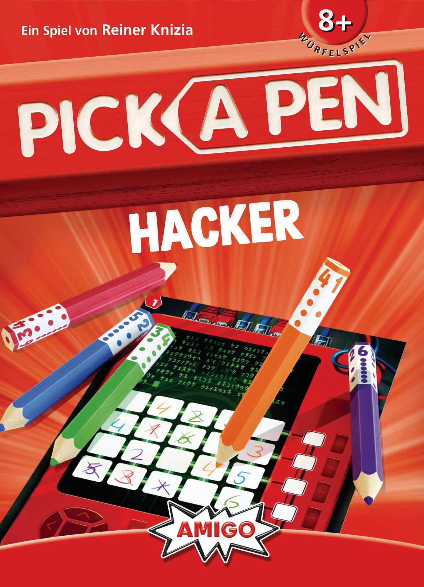 Pick A Pen – Hackers ist Teil der kreativen Pick A Pen‑Reihe von AMIGO und bietet wie seine Vorgänger ein Roll‑and‑Write‑Erlebnis, bei dem nicht Würfel allein die Entscheidung bringen, sondern auch Farbe, Auswahl und Planung eine Rolle spielen. Autor Reiner Knizia kombiniert hier geschickt Glück und Taktik, sodass sowohl Gelegenheitsspieler als auch Fans von logischen Herausforderungen angesprochen werden.